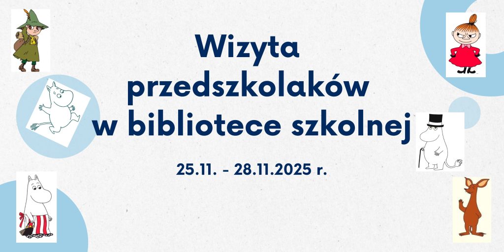 W dniach 25.11.-28.11.2025 r. bibliotekę szkolną odwiedziło 5 grup przedszkolaków z zaprzyjaźnionych przedszkoli. Dzieci uczestniczyły w warsztatach przygotowanych przez Panią bibliotekarkę. W trakcie zajęć maluchy „weszły” do świata opowiadań z Doliny Muminków.