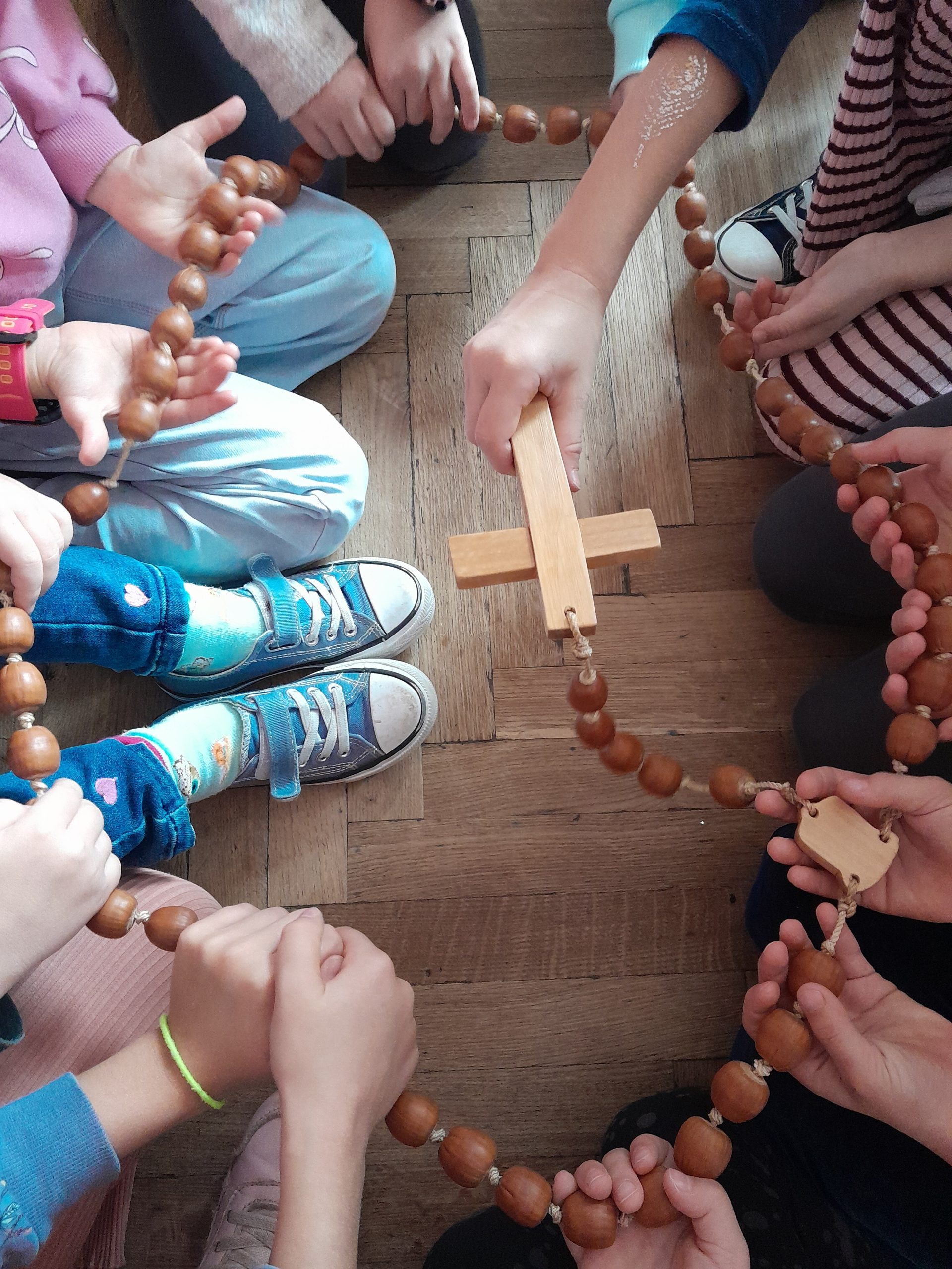 Uczniowie kl. 1c, 3b, 4d w dniu 7 października włączyli się do Ogólnoświatowej Akcji – Milion dzieci modli się na różańcu.