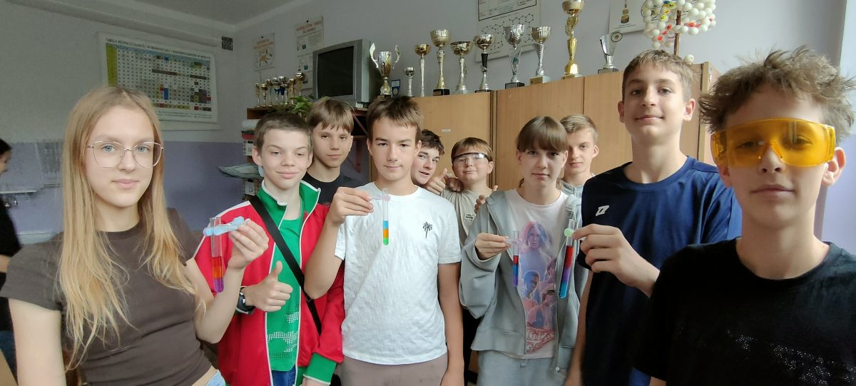 Podczas ostatnich zajęć z chemii uczniowie mieli okazję przekonać się, że nauka może być nie tylko ciekawa, ale i kolorowa! W ramach lekcji doświadczalnej samodzielnie wykonali doświadczenie „Słodka tęcza w probówce”, dzięki któremu w praktyce zastosowali pojęcie gęstości.