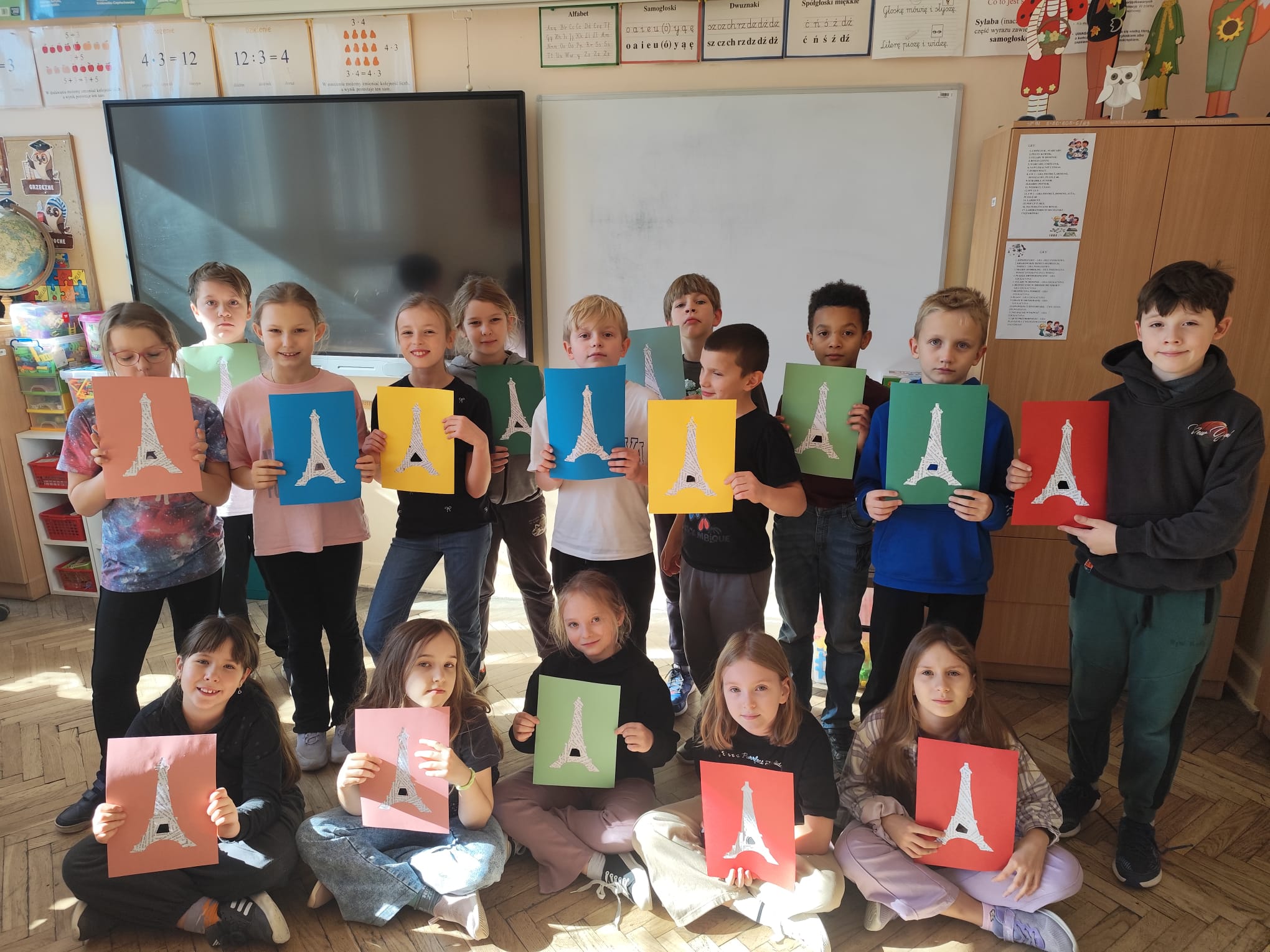 Tym razem odbyliśmy podróż do Francji. Poznaliśmy położenie tego kraju, jego stolicę oraz sąsiadów. Zwiedziliśmy najciekawsze zabytki tego państwa. Nauczyliśmy się śpiewać po francusku, w kanonie piosenkę Panie Janie. Wykonaliśmy pracę plastyczną – Wieża Eiffla. Posmakowaliśmy francuską bagietkę z dżemem. Poznaliśmy prosty taniec francuski. Zajęcia były super. Z niecierpliwością czekamy na kolejne podróże.