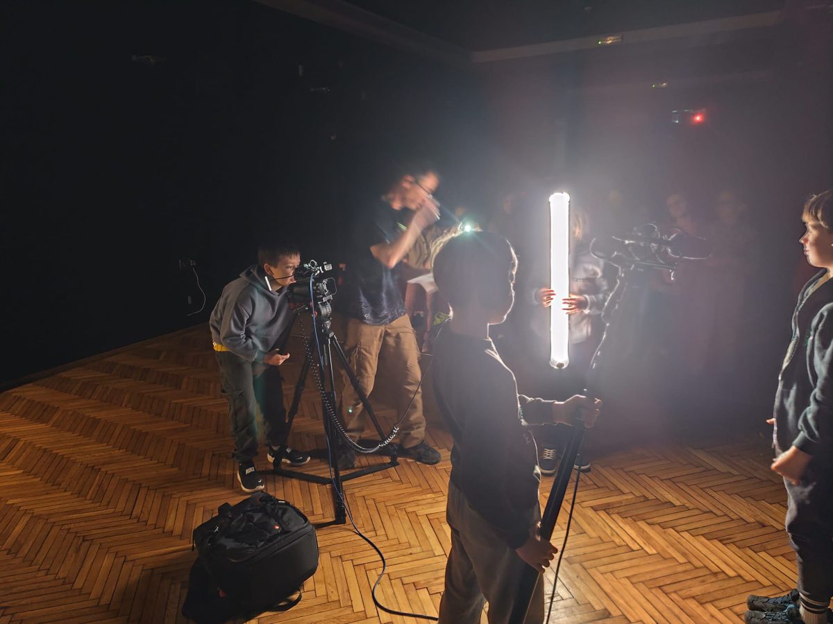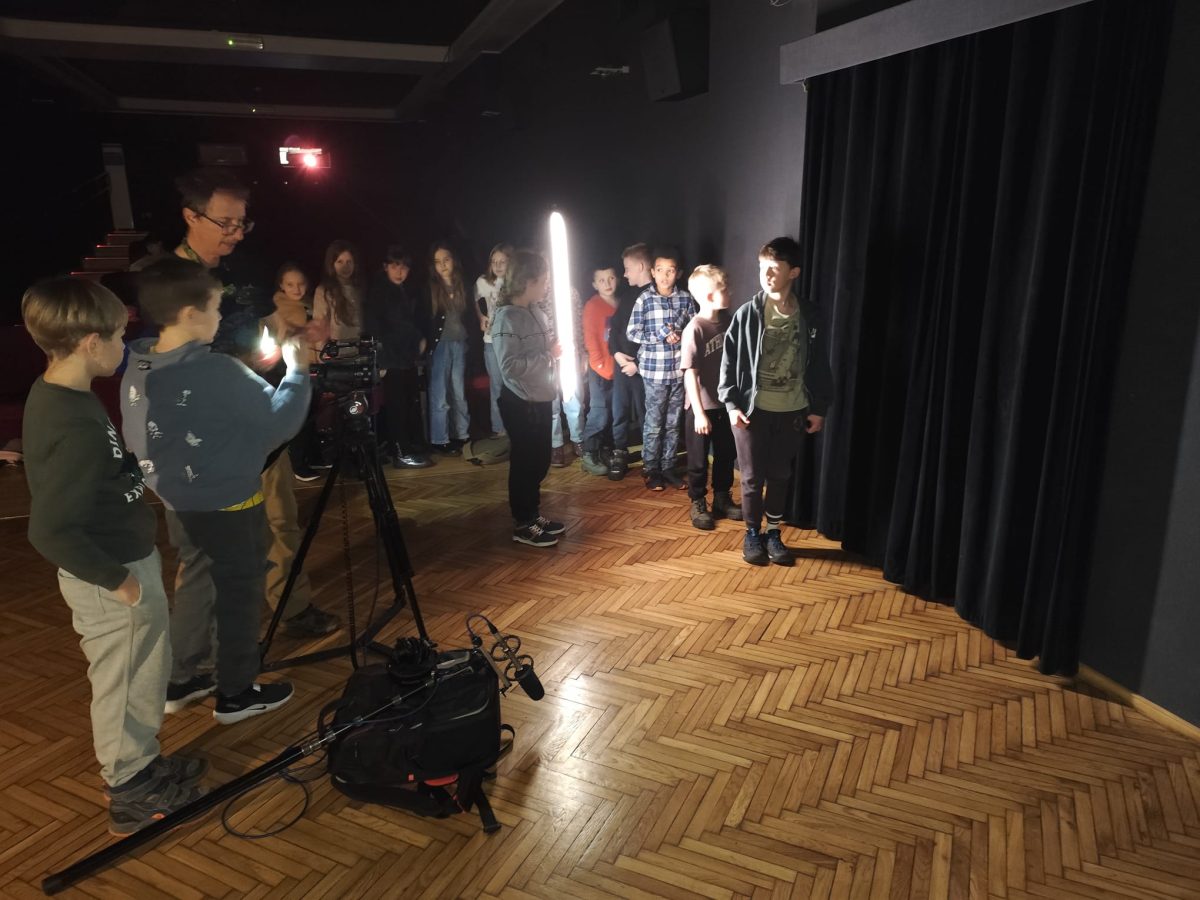 Dzieci wcieliły się w reżyserów, operatorów dźwięku, oświetleniowców i aktorów nagrywając własny film Wędrujące buty.