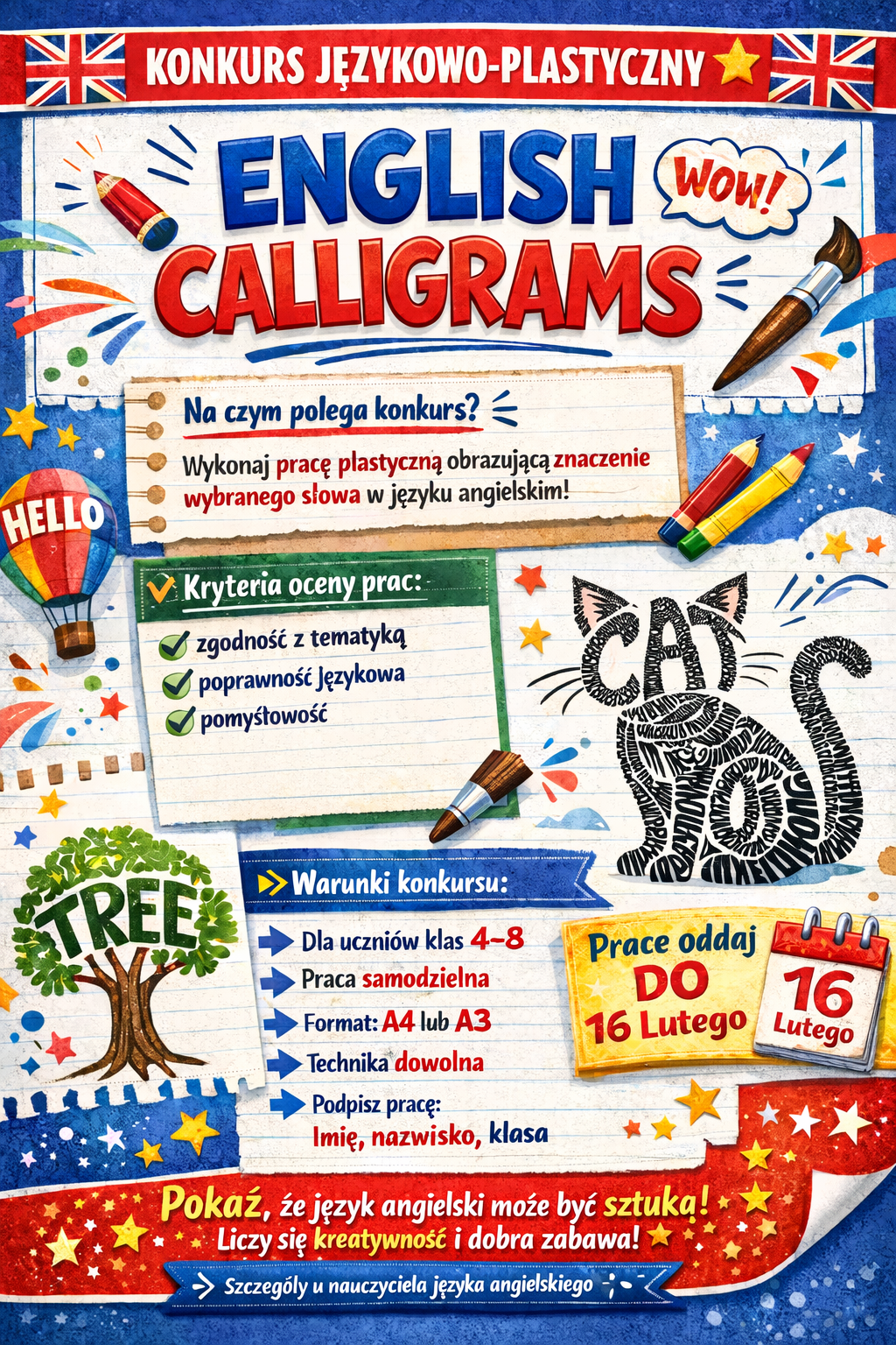 Drodzy uczniowie!Nauczyciele j. angielskiego pragną ogłosić konkurs pt. ”CALLIGRAMS”