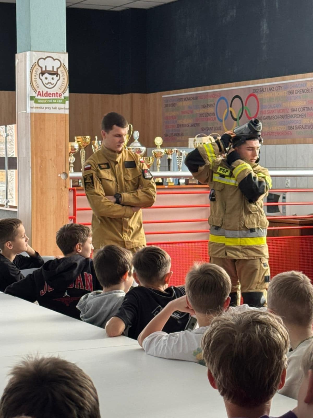 Gościliśmy u nas w szkole strażaków, którzy w praktyczny sposób przeprowadzili bardzo ciekawe zajęcia. Uczniowie byli bardzo zainteresowani i chętnie przymierzali strażackie stroje.