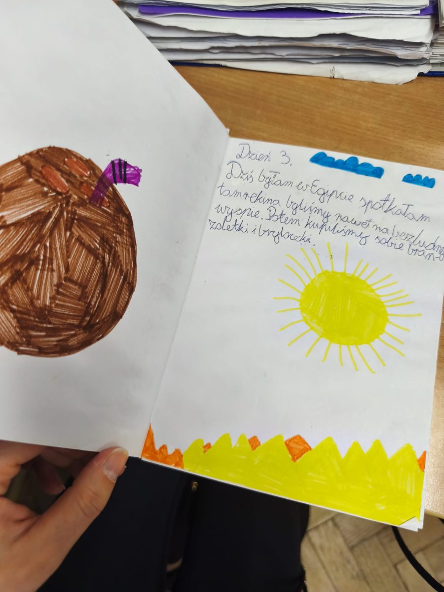 Na końcu każdy zrobił jeden dzień z dziennika podróży który ze sobą połączyliśmy i powstał nam wspólny dziennik podróży opisujący każdy dzień z naszej podróży 😉