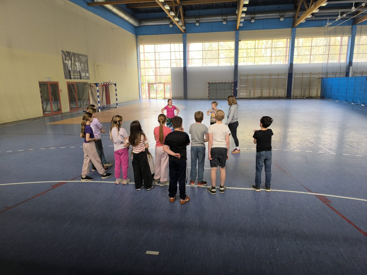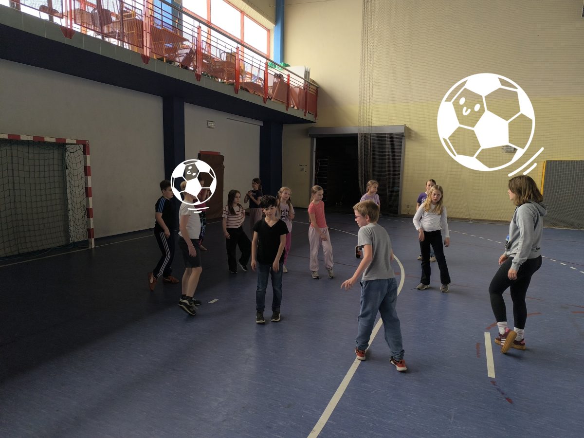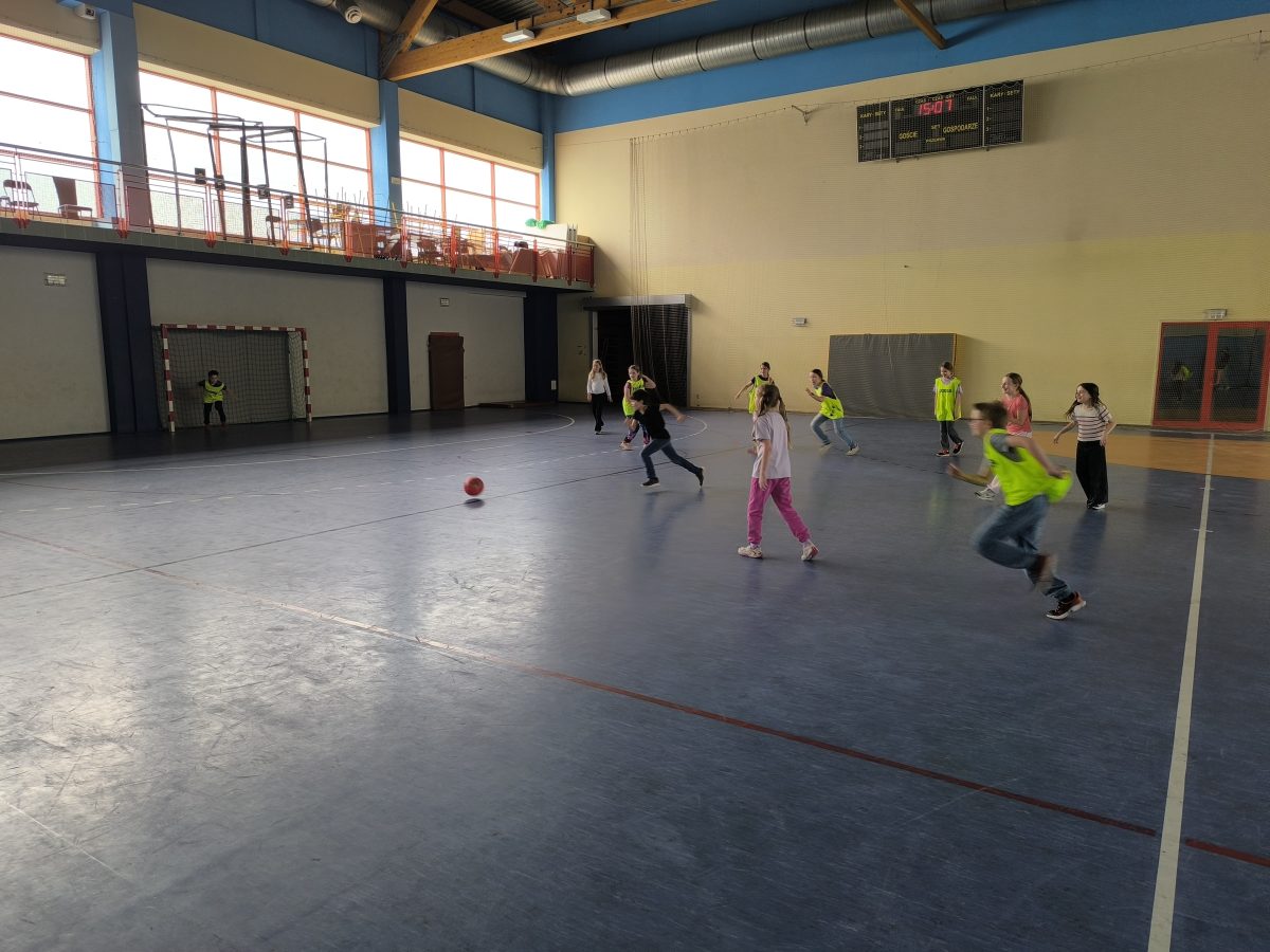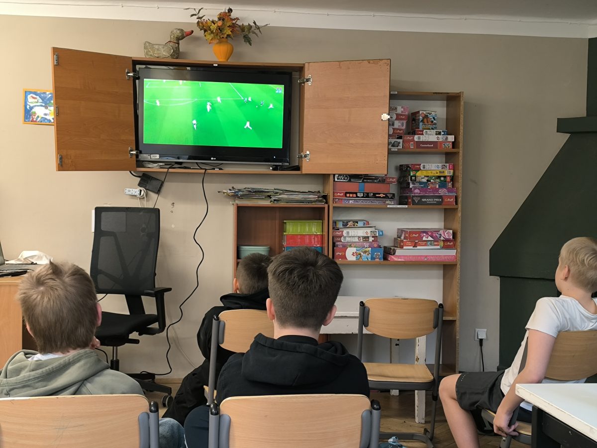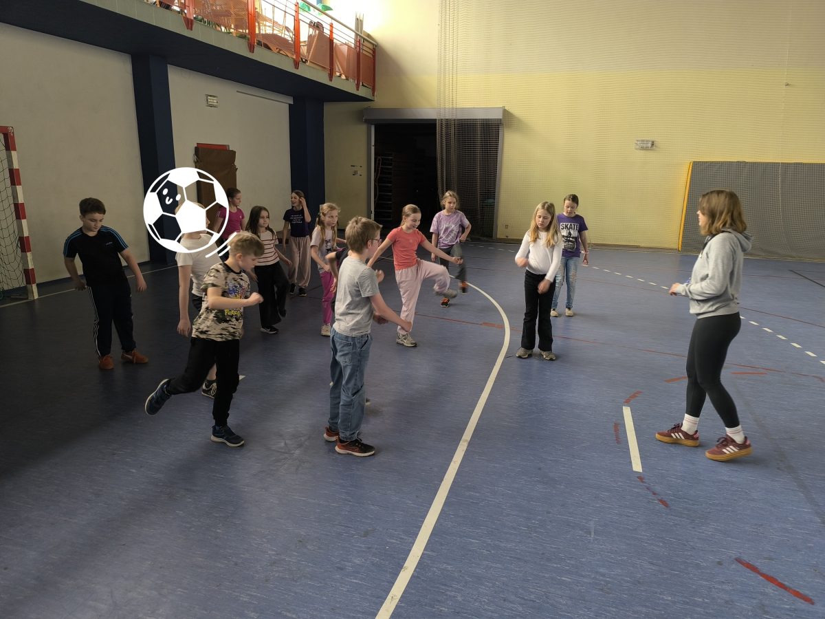 Obejrzeliśmy nagranie na którym nasz najlepszy polski piłkarz strzela swoje 100 goli w Lidze Mistrzów. Chętni przynieśli swoje albumy z kartami piłkarskimi by pochwalić się zdobyczami i powymieniać się z innymi. Następnie przeszliśmy na halę sportową gdzie rozegraliśmy mecz piłki nożnej.