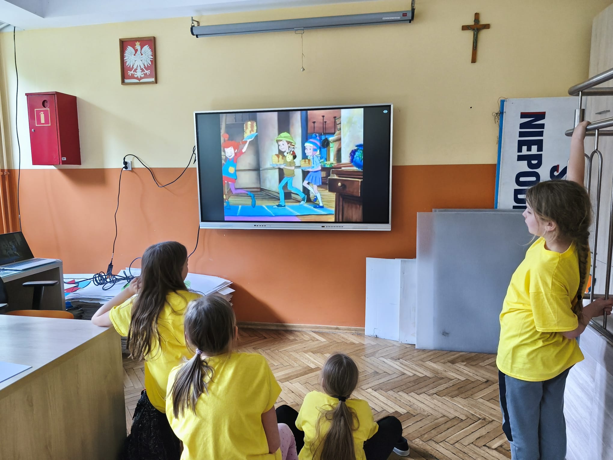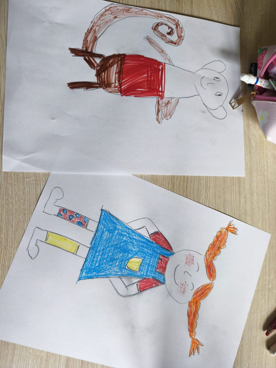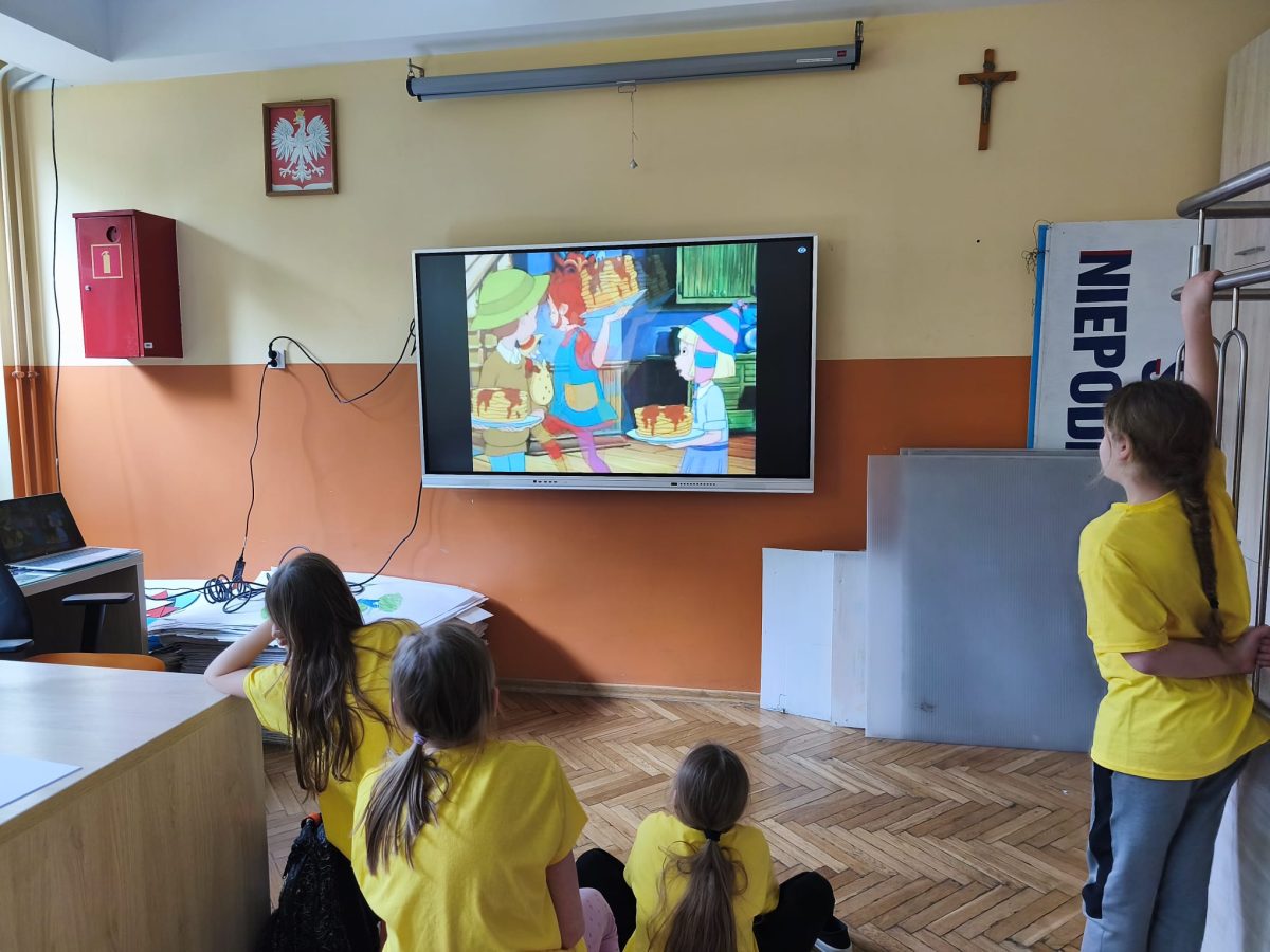 Podczas zajęć obejrzeliśmy bajkę animowaną Pippi Langstrumpf z 1997 roku. Rozmawialiśmy o silnych stronach postaci i sposobach radzenia sobie Pippi w trudnych sytuacjach. Następnie uczniowie rysowali wybrane przez siebie postacie z filmu.