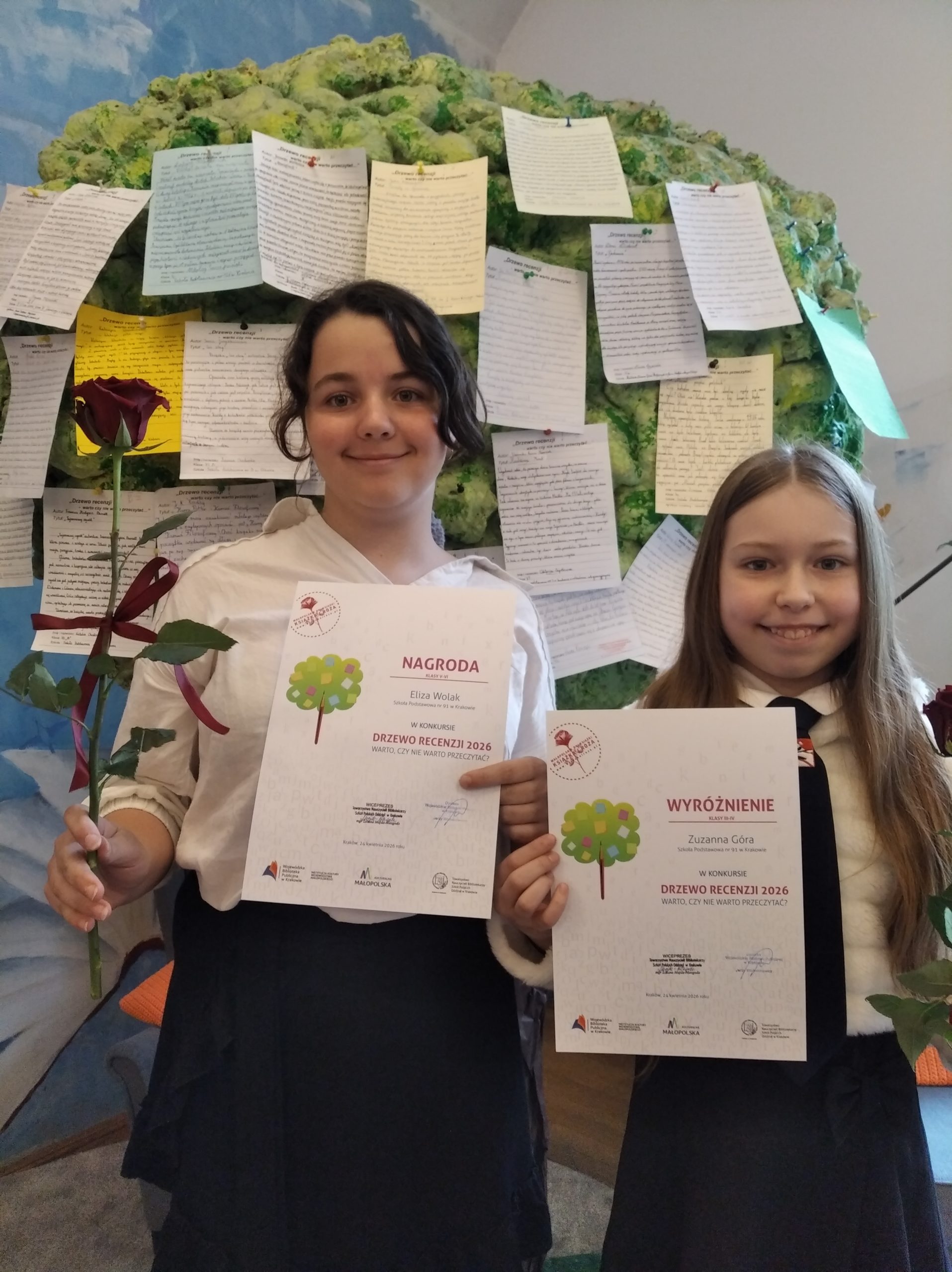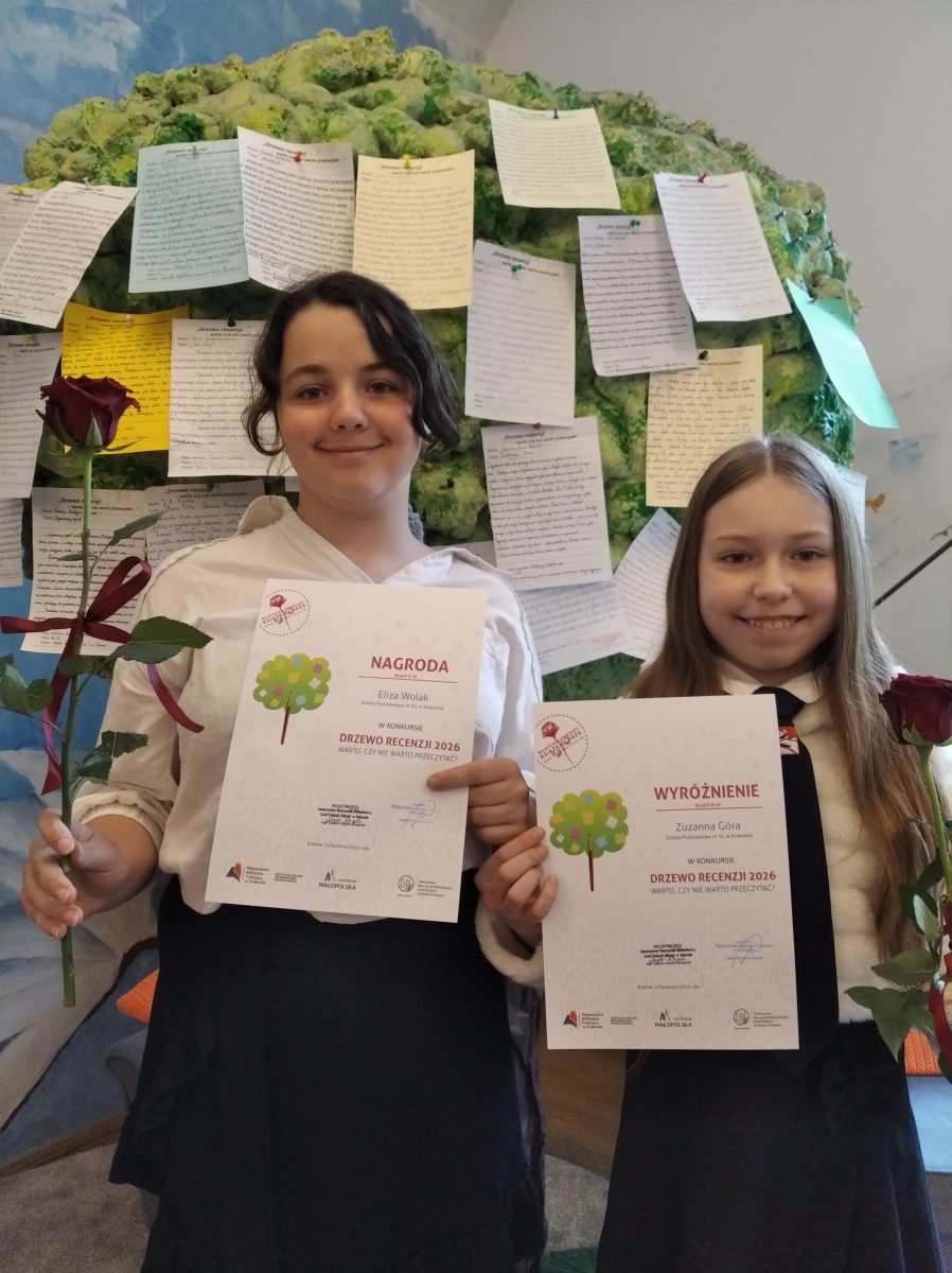 W pierwszej połowie kwietnia uczniowie z naszej szkoły wzięli udział w konkursie „Drzewo recenzji – warto czy nie warto przeczytać…”, edycja 2026 organizowanym przez Wojewódzką Bibliotekę Publiczną w Krakowie oraz Towarzystwo Nauczycieli Bibliotekarzy Szkół Polskich. Konkurs organizowany jest w ramach Małopolskich Dni Książki „Książka i Róża”.